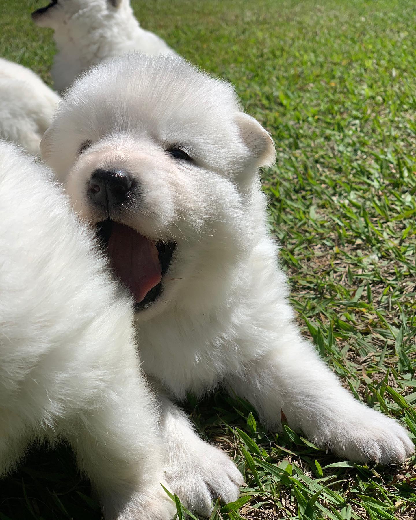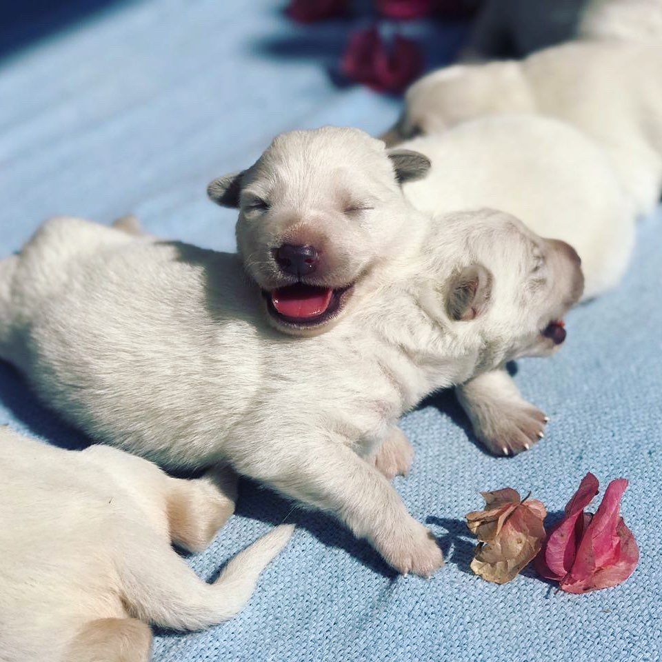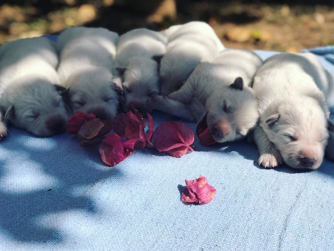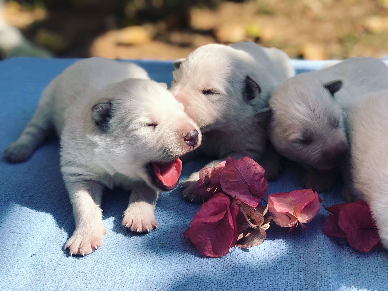 Os filhotes iniciam o desmame a partir do 20º dia de vida com a ração Royal Canin Starter Médium. Utilizamos aos 30 dias de idade a vacina Puppy DP Nobivac (contra cinomose e parvovirose canina) e aos 45 dias são vacinados com 1ª dose da vacina óctupla.